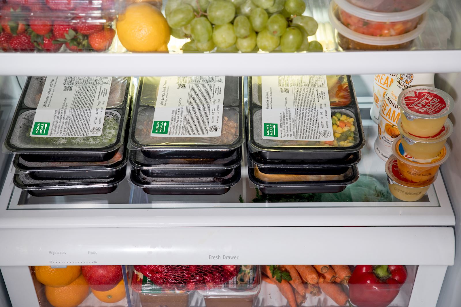 Each order we receive is packed with care in a custom-designed cooler in such a way to minimize damage and ensure safe, cool temperatures throughout transit. All deliveries are made directly to the client’s home via our Mom’s Meals route drivers or our third-party partners. With our proprietary packaging, entrees go directly in the refrigerator (40° or below) where they will last for 14 days from delivery.