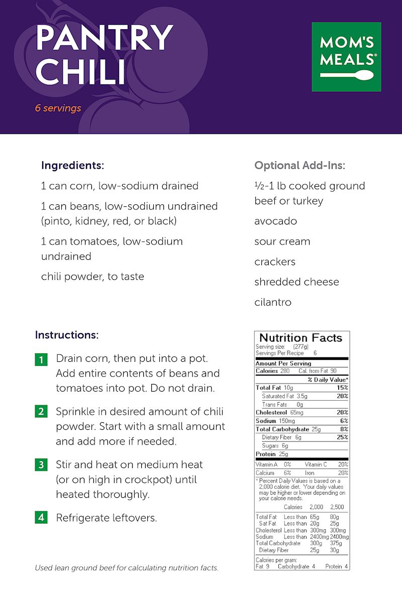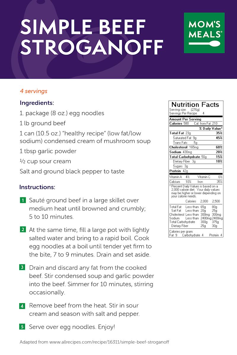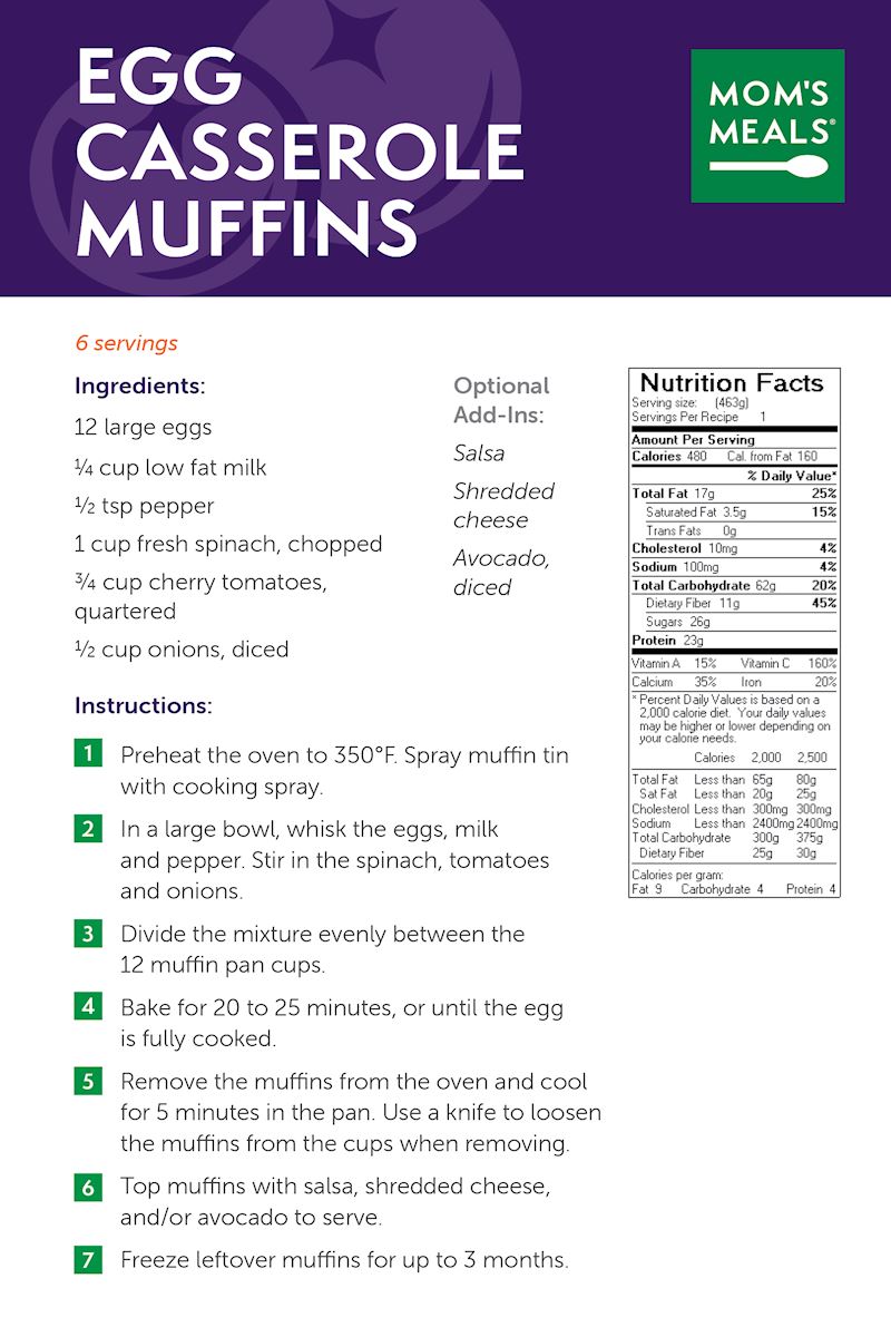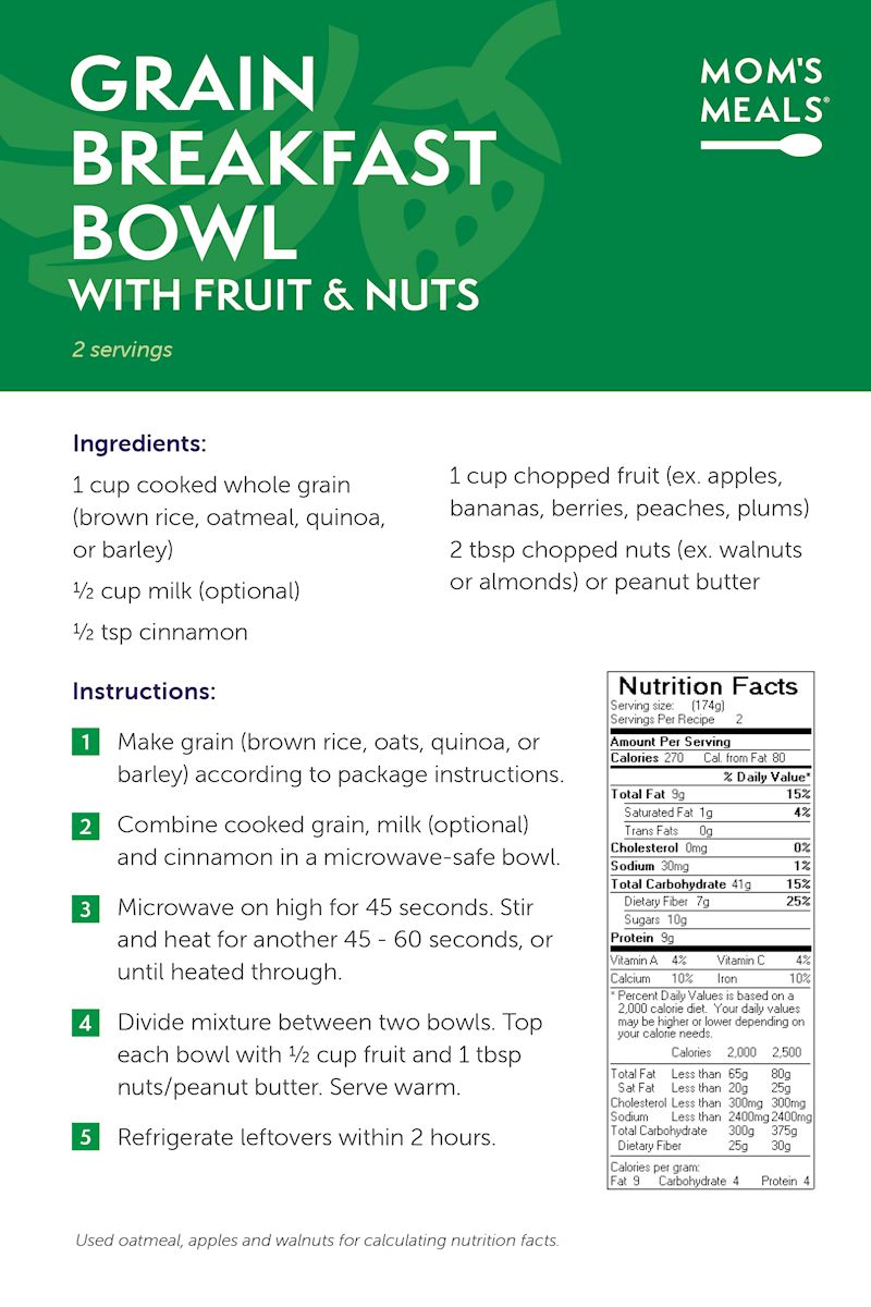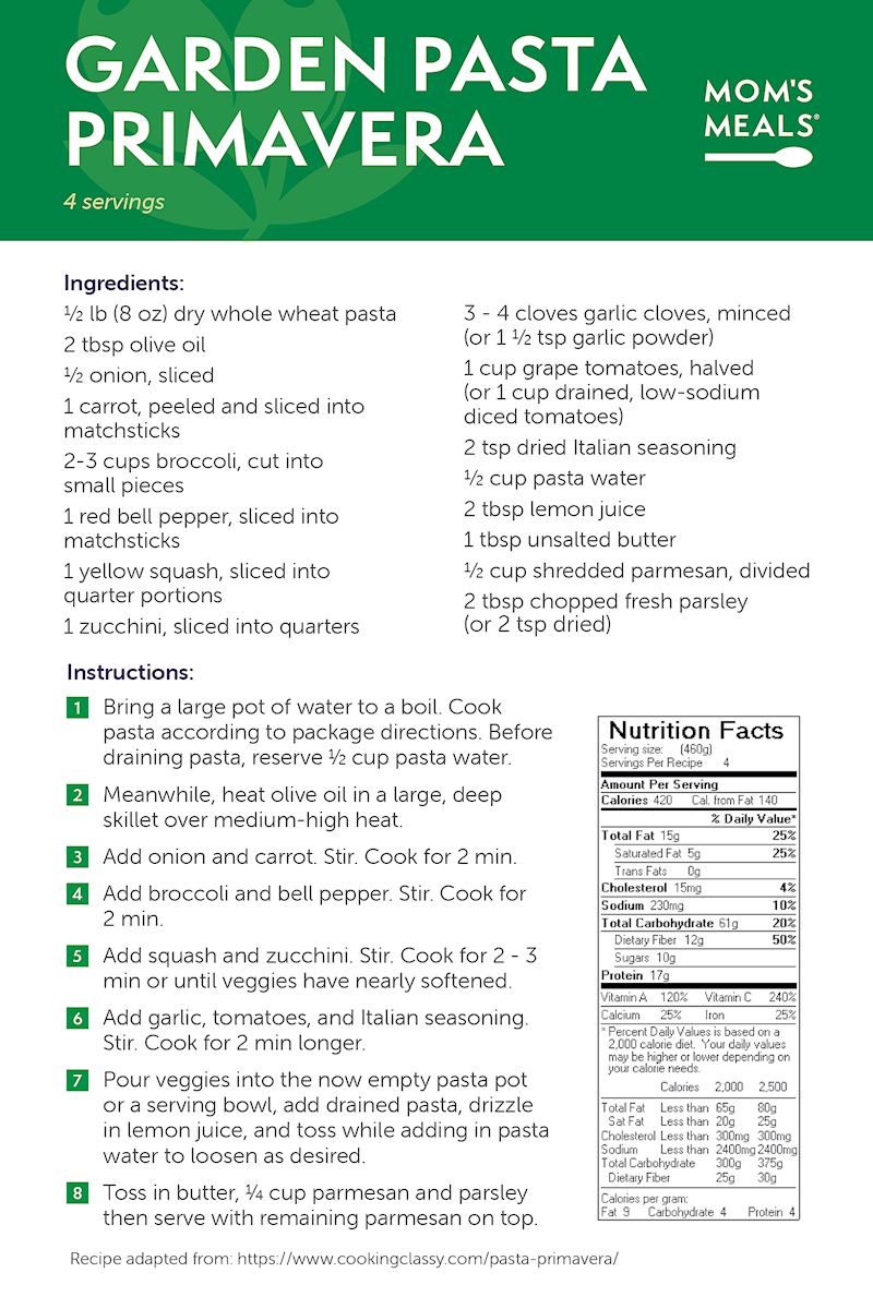 Enjoy easy-to-prepare, healthy meals at home. Click on the recipe below to see a photo and to view instructions.