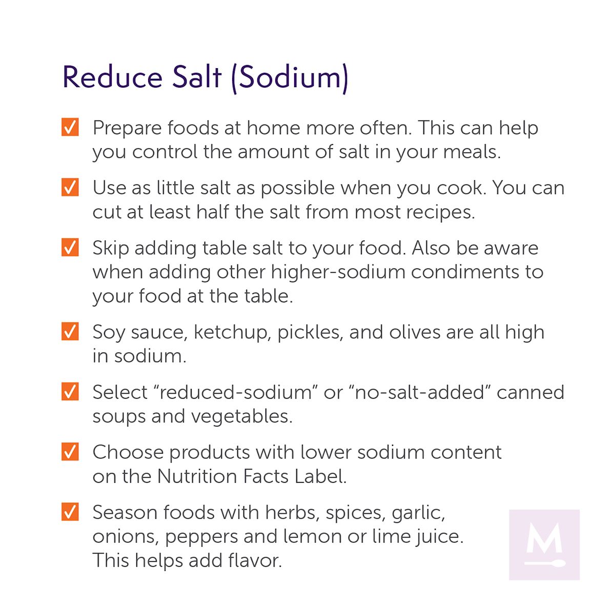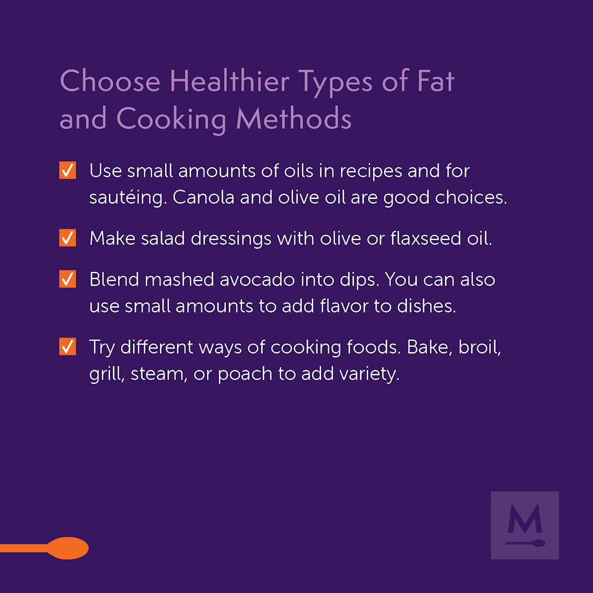 Here are some helpful tips for cooking and preparing foods to create a heart-healthy lifestyle. Click on the topic to learn more.