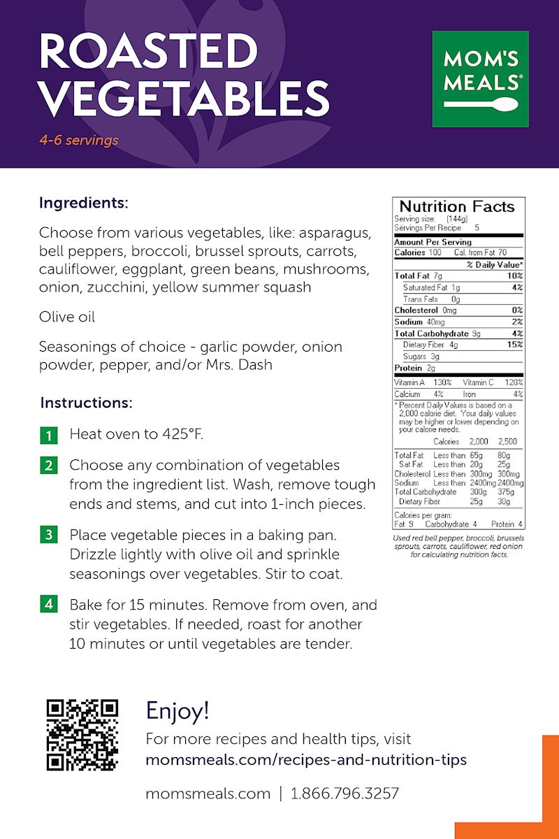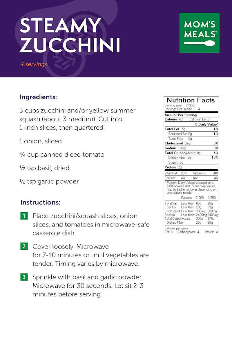 - Add a side of steamed or microwaved vegetables. Frozen veggies are great!