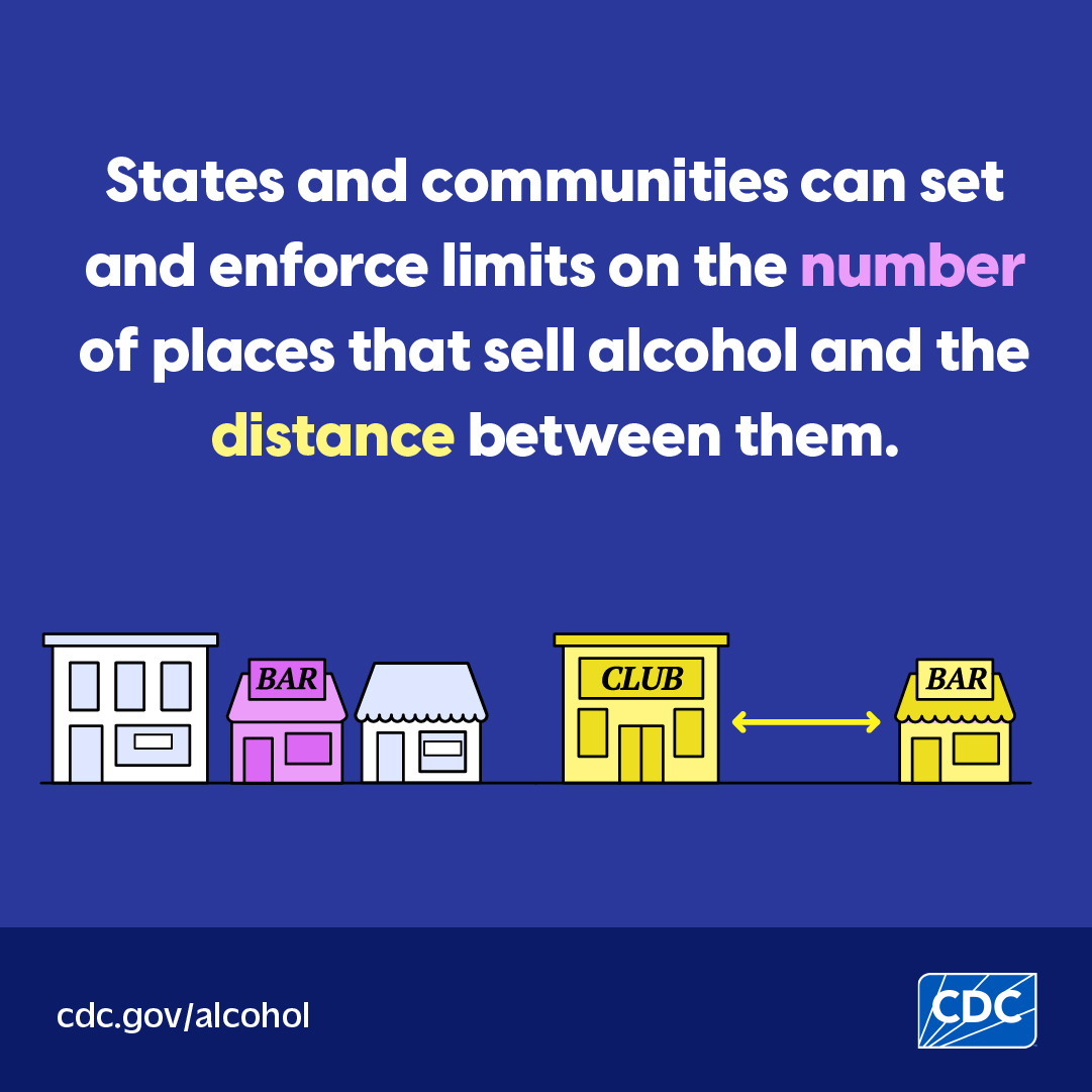 - Setting limits on places that sell alcohol can create opportunities for other businesses or organizations. This allows them to open and grow without increasing alcohol-related illness, injury, violence, and crime.