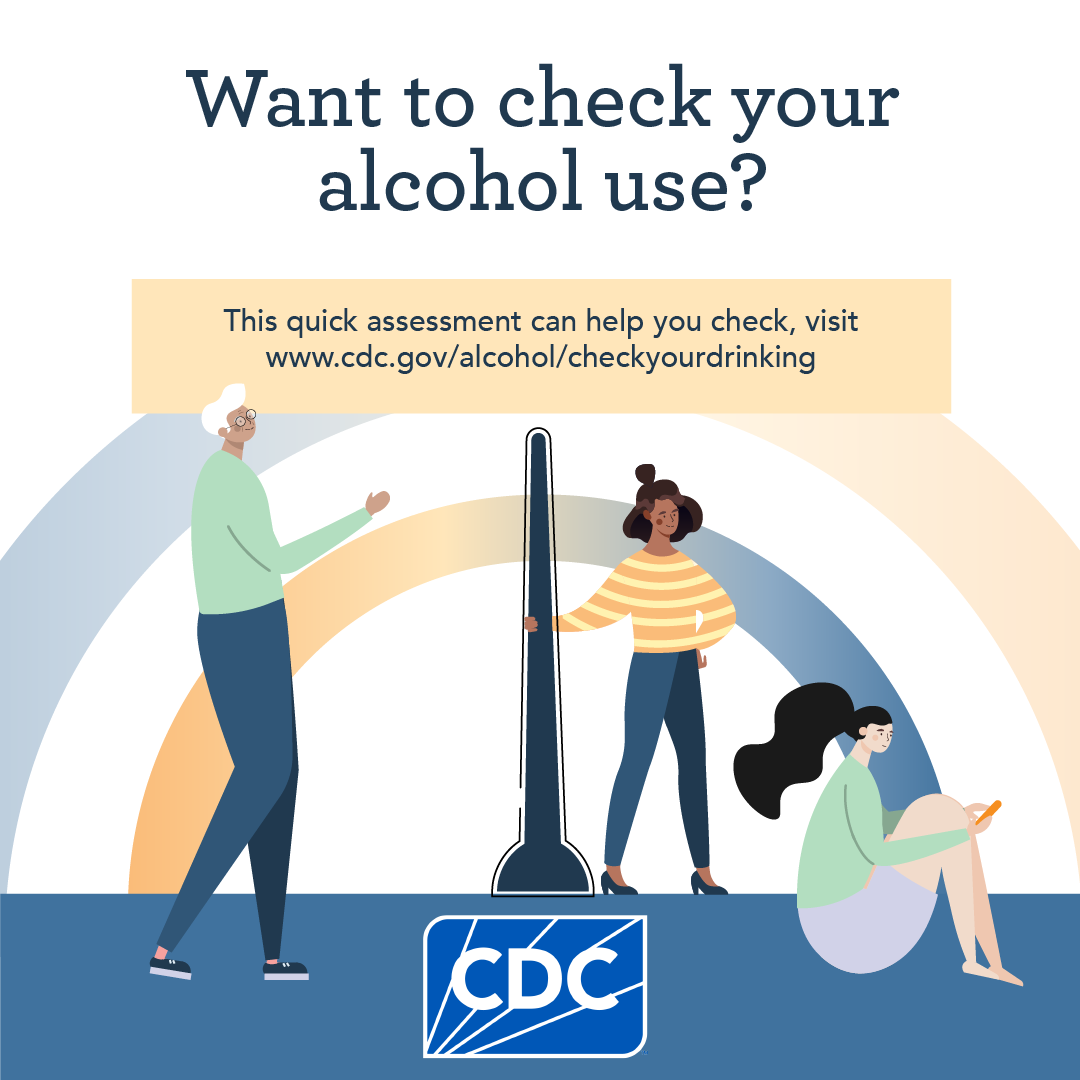 Take this quick assessment to check your alcohol use: www.cdc.gov/alcohol/checkyourdrinking.