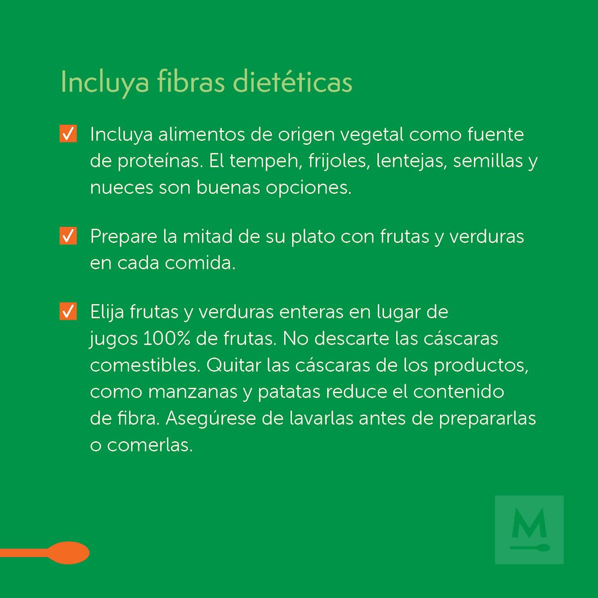 La American Heart Association recomienda llenar al menos la mitad de su plato con frutas y verduras. Esto le ayudará a consumir las 4½ tazas recomendadas de cada día. La buena noticia es que todas las verduras con importantes. Esto significa que variedades enlatadas, frescas y congeladas pueden ayudarle a alcanzar su objetivo. Cuando compre verduras y frutas enlatadas, secas o congeladas, compare las etiquetas de los alimentos. Elija los productos con la menor cantidad de sodio y azúcares agregados.