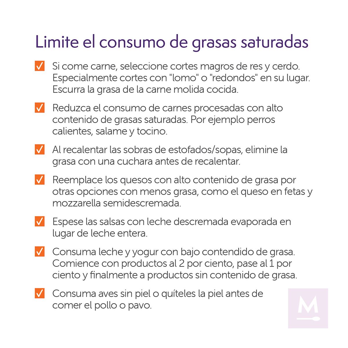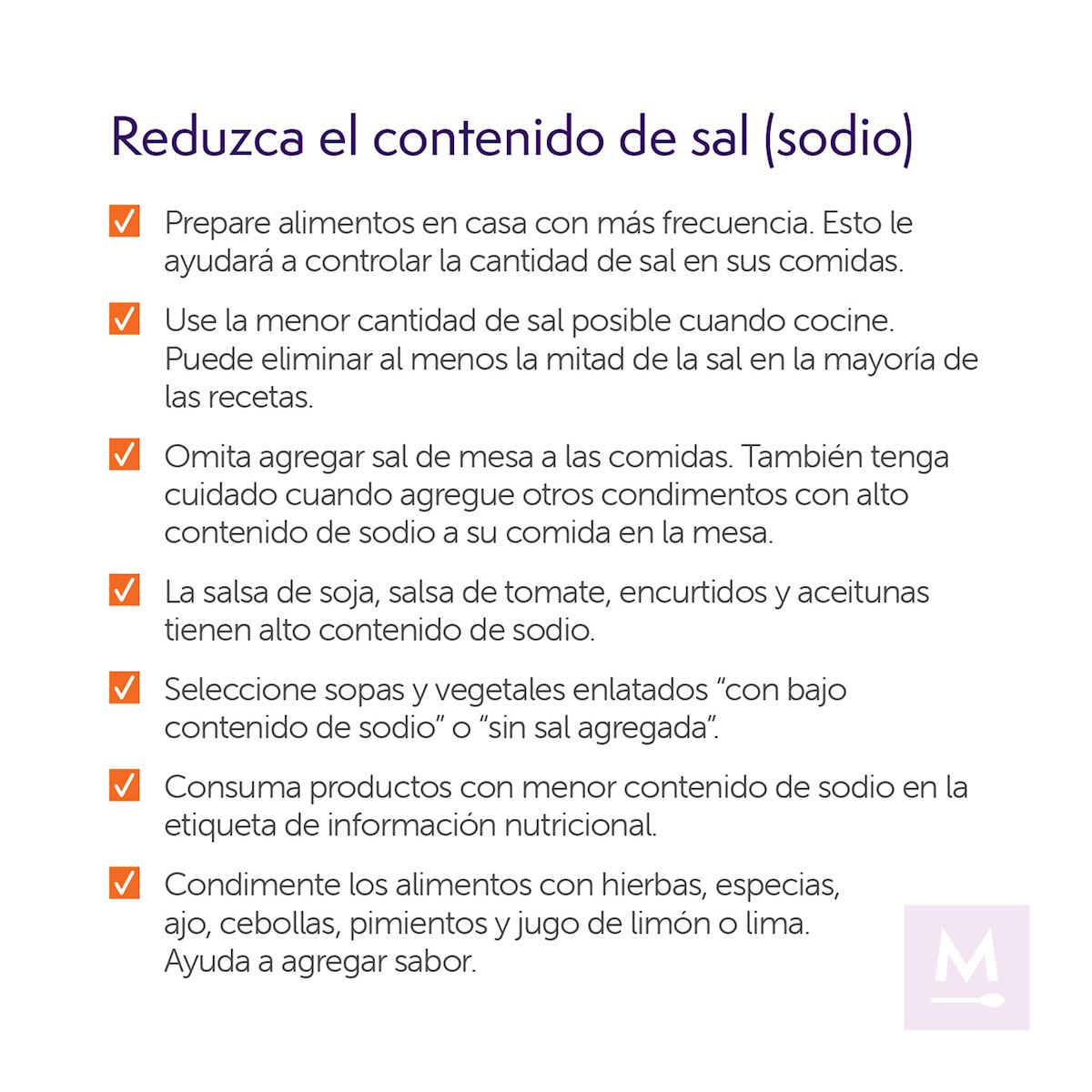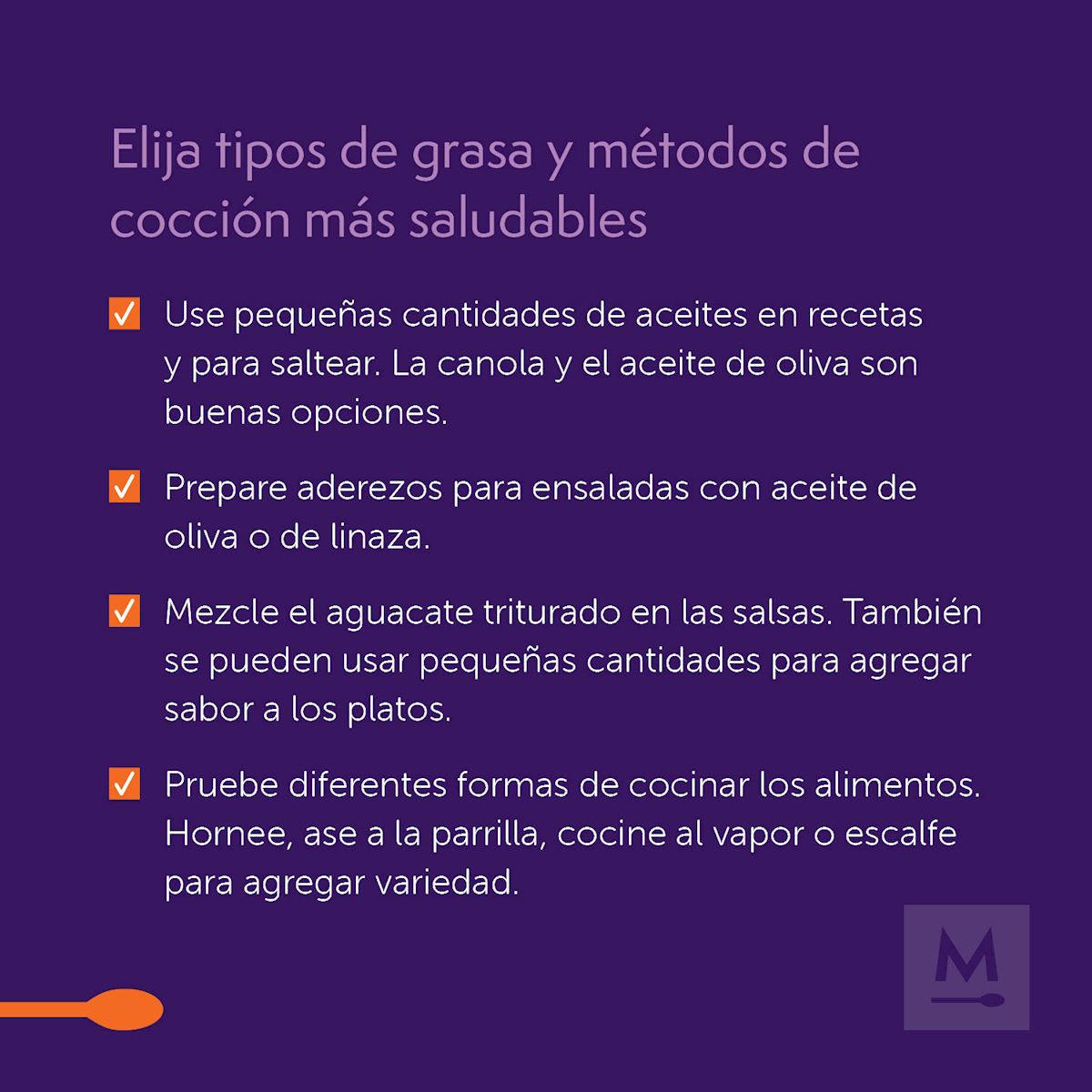 Los siguientes son algunos consejos útiles para cocinar y preparar alimentos y crear un estilo de vida saludable para el corazón. Haga clic en cada materia para obtener más información.